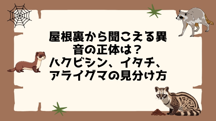 屋根裏から聞こえる異音の正体は?ハクビシン、イタチ、アライグマの見分け方